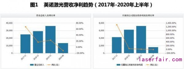 近年來隨著行業(ye) 規模不斷擴大,英諾激光的營收和淨利潤持續增長:2017年至2020年上半年,公司營業(ye) 收入分別為(wei) 2.49億(yi) 元、2.91億(yi) 元、3.59億(yi) 元和1.33億(yi) 元。可見,今年上半年營收增速驟降。