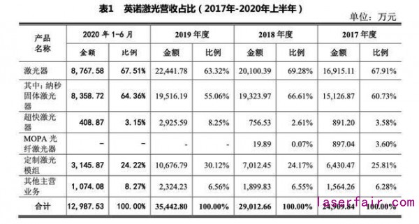 報告期內(nei) ,納秒固體(ti) 激光器是該公司目前的主導產(chan) 品(見表1)。