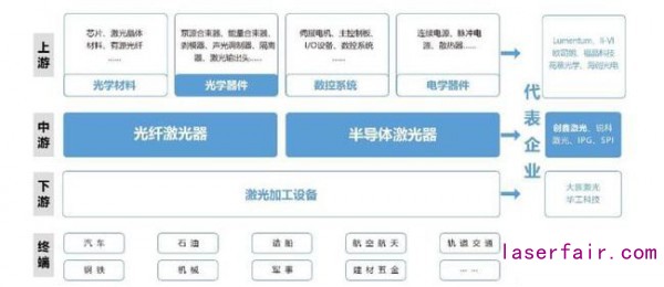 激光器處於(yu) 產(chan) 業(ye) 的中遊,屬於(yu) 整個(ge) 激光加工產(chan) 業(ye) 的核心器件。自1960年全球首台紅寶石激光器問世以來,全球激光器市場容量已經突破千億(yi) 。但作為(wei) 激光加工裝備的“芯片”,激光器行業(ye) 一直由美國IPG等巨頭企業(ye) 把控。直至近幾年,以銳科激光、英諾激光為(wei) 主的國內(nei) 企業(ye) 成功實現技術突破,但也隻能在中低端市場參與(yu) 競爭(zheng) 。