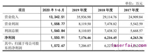 財務數據方麵,2017年-2019年,英諾激光實現營收分別為(wei) 2.49億(yi) 元、2.91億(yi) 元和3.59億(yi) 元,淨利潤分別為(wei) 0.43億(yi) 元、0.62億(yi) 元和0.72億(yi) 元,增速放緩跡象較為(wei) 明顯。