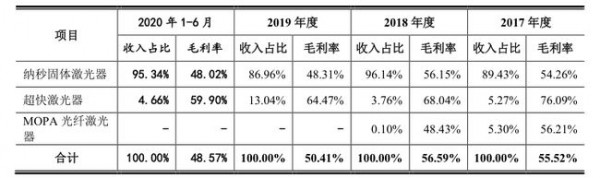 然而,作為(wei) “全球少數具有納秒、亞(ya) 納秒、皮秒、飛秒級微加工激光器核心技術和生產(chan) 能力的廠商”,英諾激光目前超快激光器收入占比尚小,2020年上半年僅(jin) 銷售11台,收入占比不足5%。此外,隨著產(chan) 品單價(jia) 的腰斬,該產(chan) 品毛利率也由76.09%下滑至59.90%。