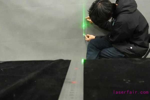 用激光筆照射鋼尺邊緣,調整入射光,使其與(yu) 鋼尺夾角較小,並能同時看到直射光線、反射光線和多級幹涉條紋的光斑。這裏需要提醒大家,光斑越小越容易測量哦。