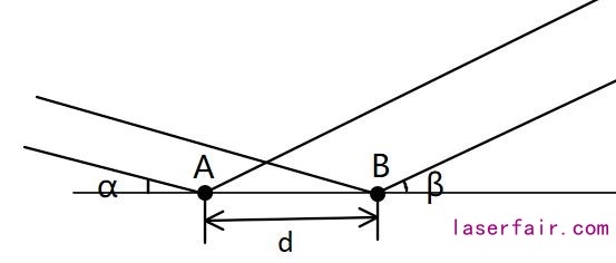 如圖所示,設 A 和 B 為(wei) 相鄰兩(liang) 刻度,相距 d 。設入射光與(yu) 鋼尺夾角為(wei) α ,出射光與(yu) 鋼尺夾角為(wei) β 。由光學原理可知,當在相鄰兩(liang) 刻度上的光程相差 k 倍波長λ 時,有光強極大值,此極大值稱為(wei) k 級條紋。有光柵方程:dcosα-dcosβ=kλ。