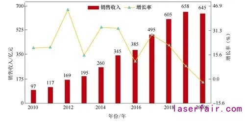 激光是20世紀的一項重大科學技術發明,與(yu) 原子能、半導體(ti) 和計算機一樣著名。具有亮度高、方向性強、單色性好、相幹性好的特點,被稱為(wei) “最快的刀”“最準的尺”“最亮的光”。在過去的60年中,與(yu) 激光有關(guan) 的研究獲得了許多諾貝爾獎,充分證明了激光技術在促進尖端科學研究和促進科學技術進步方麵的顯著作用。激光與(yu) 相關(guan) 技術的融合形成了激光製造,為(wei) 人類改變世界提供了嶄新的工具[1,2]。激光製造技術具有易操作、非接觸、高柔性、高效率、高質量和節能環保等突出優(you) 勢,是切割、焊接、表麵處理、高性能複雜構件製造和精密製造的主流手段,被譽為(wei) “萬(wan) 能加工工具”和“未來製造係統通用的加工手段”,帶動了先進製造業(ye) 的發展,對工業(ye) 智能化進程產(chan) 生了深遠影響[1]。激光技術是一種具有極強的滲透性和加工性的使能技術。激光技術支持的經濟規模遠大於(yu) 其自身的經濟規模。2010年美國研究報告指出[3],2009—2010年,美國電信、電子商務和信息技術的總價(jia) 值為(wei) 4萬(wan) 億(yi) 美元,其中激光器本身的價(jia) 值僅(jin) 為(wei) 32億(yi) 美元。因此,激光技術產(chan) 品在經濟體(ti) 係中的重要性遠超過了產(chan) 品本身的價(jia) 值規模。近年來,中國的激光加工產(chan) 業(ye) 發展迅速,國際競爭(zheng) 力迅速提高。眾(zhong) 多激光企業(ye) 已遍布華東(dong) 、華南、華北、東(dong) 北、華中及西部地區。據《2019fun88官网平台產(chan) 業(ye) 發展報告》統計,我國在26個(ge) 城市已有激光產(chan) 業(ye) 基地(園區)37個(ge) ,2011—2018年,激光設備的銷售收入提高了5倍多,湧現了一批有世界競爭(zheng) 力的激光企業(ye) [4]。經過多年的努力,中國的激光公司已經在低端激光行業(ye) 樹立了堅實的立足點,但離高端技術行業(ye) 和高端核心組件的世界先進水平仍有較大差距。在產(chan) 品方麵,跟隨型產(chan) 品居多,原創或首創性的高端產(chan) 品相對較少。我國激光技術科研主要力量集中在科研院所和高等學校,而企業(ye) 相對薄弱。目前,在我國與(yu) 激光相關(guan) 的30個(ge) 國家級研究平台中,僅(jin) 存精密超精密加工國家工程研究中心和國家半導體(ti) 泵浦激光工程技術研究中心,其他28個(ge) 均依托科研院所和高校建設。高校和科研院所承擔了大部分國家計劃的激光科研項目,而企業(ye) 承擔的隻占很小的比例。在過去的10年中,我國的激光製造已成為(wei) 先進製造業(ye) 中增長最快的領域之一,形成了一定特色,某些技術已達到國際領先水平。激光加工設備在促進傳(chuan) 統產(chan) 業(ye) 升級改造中發揮了關(guan) 鍵作用。一群激光加工設備企業(ye) 依靠創新的加工技術和卓越的設備質量在新舊動能轉換市場中找到足夠的訂單來快速增長。此外,一些製造公司已經嚐到了升級和發展的甜頭,已不滿足於(yu) 國內(nei) 垂直整合,而在積極探索跨國並購國外優(you) 質激光企業(ye) 資源,並計劃進入精密加工領域。在過去的10年中,激光加工站一直是設備企業(ye) 提供外延服務的重要觸角,通過開展陣地服務,及時滿足各類加工需求,增強客戶黏度。如今,越來越多集多功能於(yu) 一體(ti) 的大型設備已被開發並應用於(yu) 軌道交通、航空航天、船舶製造等行業(ye) 。預計到2020年,基於(yu) 工業(ye) 互聯網的各類雲(yun) 製造平台將逐漸釋放價(jia) 值,激光加工站將在雲(yun) 製造平台的支持下發揮出更大的功用,並沿著“一帶一路”走進東(dong) 南亞(ya) 、中東(dong) 、南美等多個(ge) 地區。在經曆了2017—2018年的快速增長之後,中國的激光市場在2019年進入了一個(ge) 相對穩定的時期。2019年中國工業(ye) 激光市場的發展開始影響全球工業(ye) 激光經營收入。一方麵,日益激烈的價(jia) 格競爭(zheng) 導致光纖激光器和超快激光器的價(jia) 格急劇下降,但國產(chan) 設備的質量、技術和服務在競爭(zheng) 中逐步得到改善,國產(chan) 激光產(chan) 品的興(xing) 起正在逐步取代進口激光產(chan) 品;另一方麵,激光技術的應用比許多傳(chuan) 統製造技術更具成本效益,從(cong) 而使激光應用迅速普及。2019年激光設備(含進口)市場銷售總收入為(wei) 658億(yi) 元,比2018年增長8.8%。受全球經濟走勢不確定的影響,預計2020年fun88官网平台設備市場整體(ti) 銷售收入將受到很大影響(見圖1)。2019年,國內(nei) 共有規模以上激光企業(ye) 超過150家,其中半數以上的企業(ye) 集中在激光加工和激光器相關(guan) 領域[4]。
