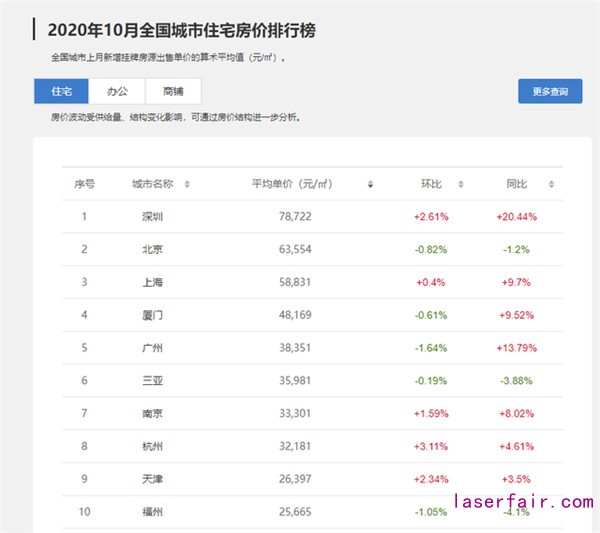 對於(yu) 大部分國人來說,深圳的科技有多發達,他們(men) 並不清楚;深圳的人才有多少,他們(men) 同樣不知道;但如果問深圳的房價(jia) 有多貴,那麽(me) 大多數人還是心裏有點數的。在中國房價(jia) 行情官網上,我們(men) 可以看到在2020年10月的全國房價(jia) 排行榜上,深圳以78722元/平米的均價(jia) 傲視群雄,甚至北京、上海都不能與(yu) 深圳相提並論。