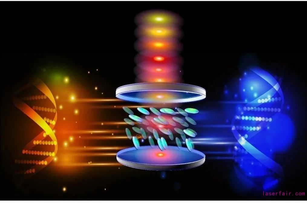 圖2 DNA分子與(yu) 液晶的交互作用,激光可以有效地在時域上變換輸出不同發光波長