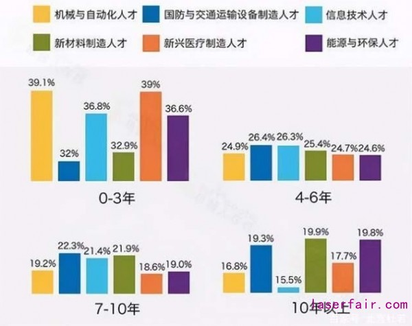 在新材料製造人才上麵,在入行的0——3年內(nei) 是一個(ge) 發展高峰期,但是隨後的7年時間內(nei) 從(cong) 業(ye) 人數也是在逐漸減少。