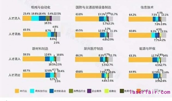 相對比其他類製造業(ye) 來講,機械與(yu) 自動化行業(ye) 在吸引各界跨界人士方麵有著很大的優(you) 勢,剩餘(yu) 的其餘(yu) 5個(ge) 行業(ye) ,他們(men) 的相互流入流出在數據上看是達到了相對的平衡。