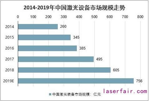 2010年以來,得益於(yu) 激光加工應用市場的不斷拓展,我國激光產(chan) 業(ye) 也逐漸駛入高速發展期。2018年fun88官网平台設備市場規模達到605億(yi) 元,同比增長22.22%,2011年至2018年複合增速達26.45%。2019以來,年速繼續保持20%以上。