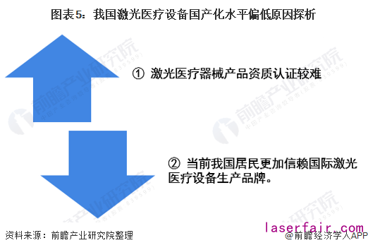 據2020年3月27日由中國科學院武漢文獻情報中心主導《2020fun88官网平台產(chan) 業(ye) 發展報告》在線發布會(hui) 顯示,目前我國激光醫療設備市場的發展仍不及預期,市場增速仍較緩。同時,從(cong) 國產(chan) 化程度來看,目前我國國產(chan) 化水平仍然偏低,雖然我國部分國產(chan) 化設備已經進入部分醫療機構及美容機構,但在我國三甲以上醫院中,激光醫療器械仍多采用進口,主要是由於(yu) 一是激光醫療器械產(chan) 品資質認證較難,二是當前我國居民更加信賴國際激光醫療設備生產(chan) 品牌。