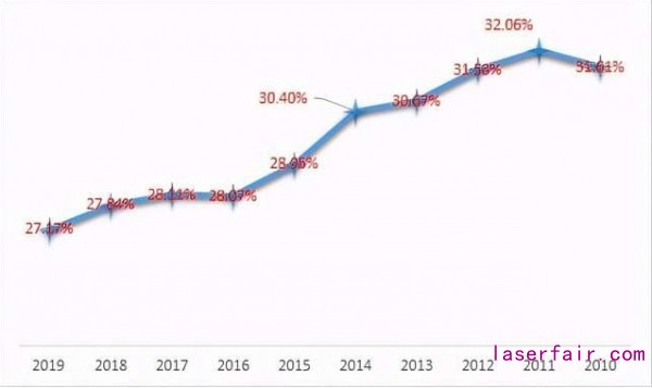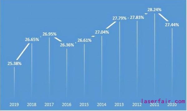 我們(men) 來和主要的國家比較一下,中國的占比是最高的,既高於(yu) 發達國家的英美日德韓,也高於(yu) 發展中國的泰國、越南等,那麽(me) 是不是我們(men) 就沒有擔憂呢?其實不是,因為(wei) 我們(men) 並不是穩定維持在這個(ge) 水平,比如韓國的情況就相對較好。