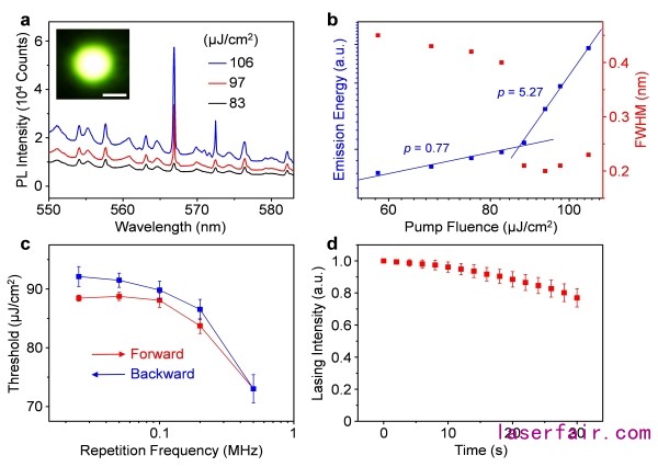 圖2.熱活化激光機製實現有機準連續激光