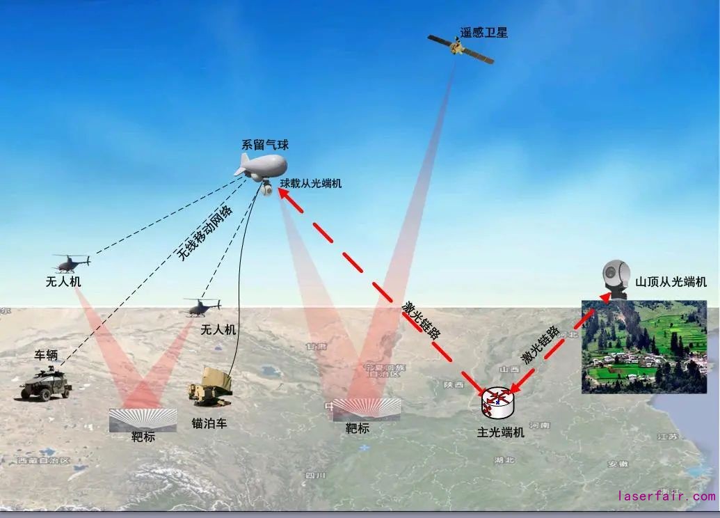 我校負責研製的“一點對多點”同時激光通信係統,主要由主光端機、艇載從(cong) 光端機、地麵從(cong) 光端機組成。本次試驗驗證了空中飛艇對地麵中繼光學終端的快速建鏈與(yu) 通信能力,為(wei) 衛星、飛艇及無人機協同觀測建立了穩定而高效的信息傳(chuan) 輸網絡。由於(yu) 試驗地點條件限製,最終實現了飛艇飛行高度200m,主光端機與(yu) 從(cong) 機間通信速率2.5Gbps、通信距離2Km、通信誤碼率優(you) 於(yu) 1E-9的性能指標。