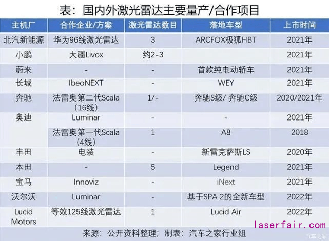 回首2017-2020年,全球已有十數家主機廠確定將在量產(chan) 車型上搭載激光雷達。不管馬斯克如何“鄙夷”,激光雷達前裝量產(chan) 潮流不可逆。在這批激光雷達量產(chan) 項目中,落地時間都不約而同地定在2021-2022年。