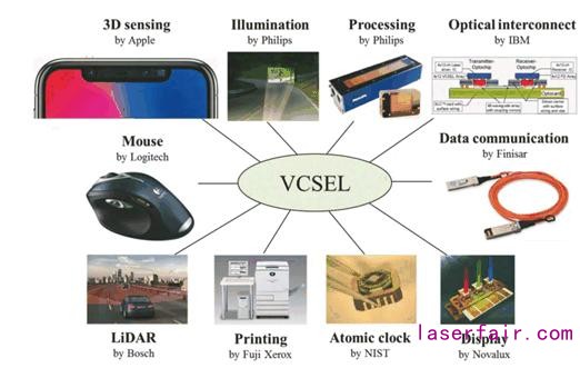 自1990年以來,伴隨著VCSEL器件性能的不斷提高,VCSEL已經得到了市場的廣泛認可,其應用領域也呈爆炸式增長(圖1)。隨著激光泵浦、醫療、軍(jun) 事以及材料加工等應用領域的需求日益增長,高功率VCSEL 成為(wei) 很重要的一個(ge) 研究方向。同時,由於(yu) 先進駕駛係統、雲(yun) 計算、物聯網技術與(yu) 5G通信技術等應用愈發成熟,信息的急劇增加產(chan) 生了對數據帶寬大幅增長的需求,而高速VCSEL因其在光互連和光數據網絡中的應用而成為(wei) 全球研究的熱點。而能應用在光互聯、3D傳(chuan) 感、車載雷達、原子鍾等領域,緣於(yu) VCSEL的關(guan) 鍵特性:穩定的高溫性能和對溫度變化的不敏感。為(wei) 滿足這些應用需求,高溫穩定工作、可靠性高的VCSEL近年來越來越受到關(guan) 注。