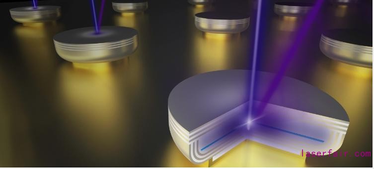 光泵浦UVB垂直腔麵發射激光器(VCSEL)的藝術插圖