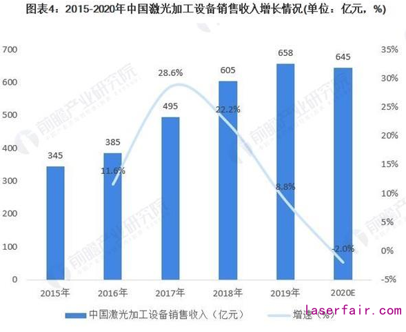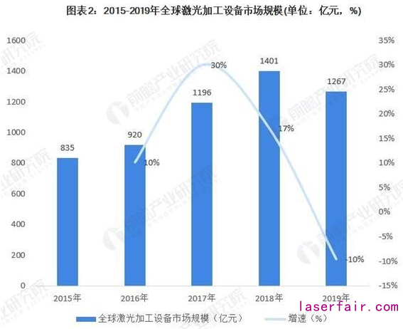 全球激光加工設備市場規模超過千億(yi) 元,2019年達到1267億(yi) 元,同比下降10%。
