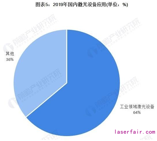 相對於(yu) 全球激光設備應用領域,國內(nei) 激光設別應用較為(wei) 單一與(yu) 集中,64%的比重應用於(yu) 工業(ye) 領域。