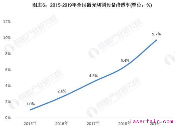 相對於(yu) 國際激光設備製造與(yu) 應用,我國激光切割設備滲透率較低,歐美發達國家已經步入“光加工”時代,我國激光加工設備應用滲透率相對國際水平較低,2019年我國激光切割設備銷量僅(jin) 為(wei) 金屬削機床銷量的9.7%,不到10%,占比較低。