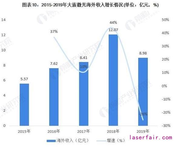 大族激光不僅(jin) 銷往國內(nei) ,還大力銷往海外,2015-2018年大族激光海外收入快速增長,2019年出現下降,達8.98億(yi) 元,同比下降26%,占公司總收入的9.4%。2020年公司加快國際化步伐,對標國際競爭(zheng) 對手,重新規劃產(chan) 品及戰略,進軍(jun) 海外高端市場。