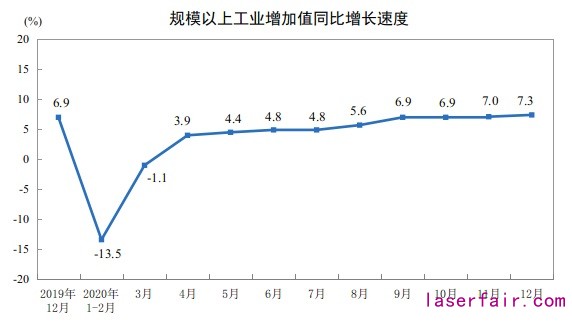 從(cong) 12月來看,規模以上工業(ye) 增加值同比實際增長7.3%,增速較11月加快0.3個(ge) 百分點;環比增長1.10%。寧吉喆分析稱,12月增速達到了去年全年的高點,但是從(cong) 近兩(liang) 年的月度增速來看,仍處於(yu) 正常區間。