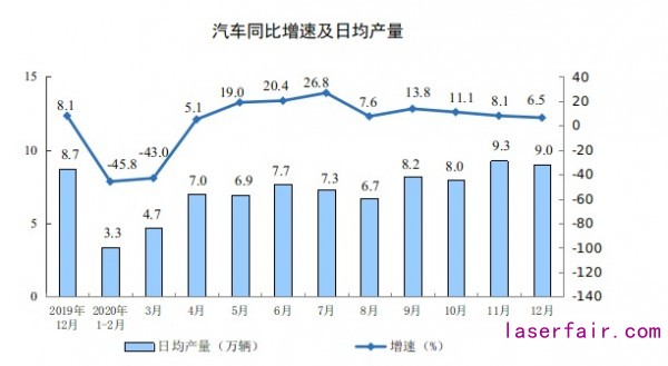 在三大門類之中,製造業(ye) 12月增長7.7%,增速與(yu) 上月持平。其中,汽車製造業(ye) 增長9.7%,高於(yu) 整體(ti) 製造業(ye) 增速。