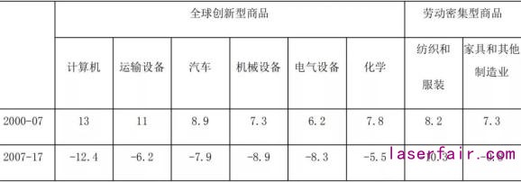 近年來,世界製造業(ye) 價(jia) 值鏈呈現“縮短”的趨勢。根據麥肯錫全球研究院的研究,幾乎所有商品生產(chan) 價(jia) 值鏈中的貿易強度(即總出口與(yu) 總產(chan) 出的比率)都有所下降,全球跨境貿易占全球產(chan) 出的比例已從(cong) 2007年的28.1%降至2017年的22.5%,而且在那些最複雜和交易量最大的價(jia) 值鏈中,貿易強度的下降尤為(wei) 明顯。從(cong) 表6可以看到,計算機、運輸設備、汽車、機械設備、電氣設備、化學、紡織和服裝、家具等產(chan) 業(ye) 在2000-2007年間的貿易強度均有不同程度的提高,而2007-2017年間則普遍出現了下降,創新型複雜產(chan) 品的下降幅度相對更為(wei) 明顯。