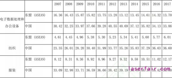 表8 中國和東(dong) 盟勞動密集型產(chan) 品出口