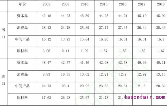 一是發展中國家特別是中國國內(nei) 創新能力提高,國內(nei) 配套能力增強,許多中間投入品實現了國內(nei) 生產(chan) 而無需到國際市場上進行采購。根據WITS數據庫的數據,從(cong) 2005年到2018年,中國出口商品中資本品的比重從(cong) 42.18%提高到45.92%,而進口商品中資本品比重從(cong) 48.47%下降到40.11%,中間產(chan) 品比重從(cong) 24.73%下降到20.32%,表現出中國資本品與(yu) 中間產(chan) 品自給能力的增強。