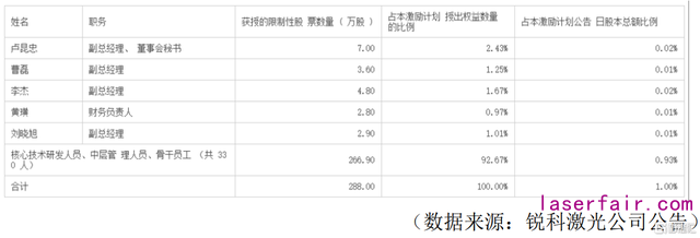 (1)本次長期股權激勵計劃激勵對象主要分配給公司核心技術研發人員(266.90萬(wan) 股)。