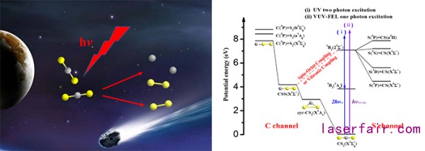 星際空間硫化物的產(chan) 生與(yu) 演化是重要的研究課題。20世紀80年代,國際紫外線探測器人造衛星(IUE satellite)陸續在多顆彗星上觀測到了CS、S2分子,而其母體(ti) 分子CS2由於(yu) 沒有永久偶極矩,在很長一段時間內(nei) 未被觀測到。目前,普遍認為(wei) ,CS2是慧核、星際塵埃或冰核中存在的氣體(ti) 分子,而CS和S2是CS2光解產(chan) 生的,但CS2主要的解離機理並不十分清楚,S2尚未被實驗直接觀測到。因此,CS2的光解研究有助於(yu) 人們(men) 進一步了解彗星及星際塵埃的物質組成及其相互演化過程。