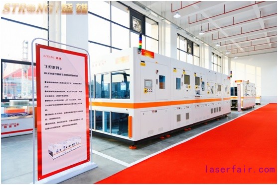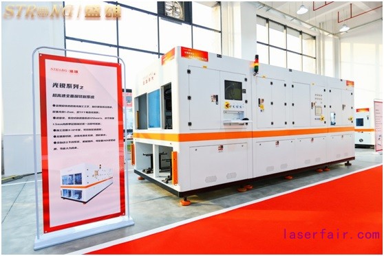 第三款產(chan) 品是“光銳係列----超高速全麵屏切割係統”新一代產(chan) 品,公司工藝研發總監曾而通先生做了現場介紹。這款產(chan) 品自推出以來累計銷售100多台,切割CRU速度能超越800片/每小時,大約為(wei) 4秒鍾完成一次切割,效率是全球最快,達到全行業(ye) 第一!產(chan) 品采用盛雄激光自主研發生產(chan) 的專(zhuan) 用紅外皮秒激光器,配備同樣是自產(chan) 的精密切割頭,擁有很高的穩定性可靠性。