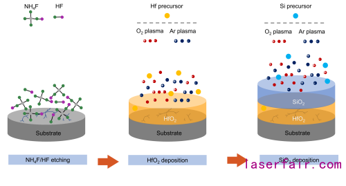 圖1 低溫PEALD技術沉積HfO2/SiO2紫外減反膜示意圖