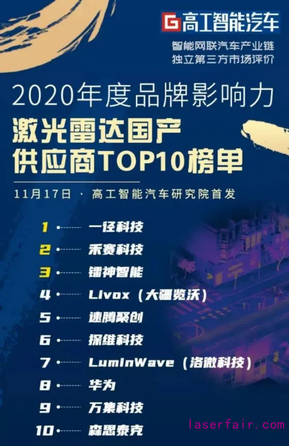 《榜單發布!國產(chan) 激光雷達TOP10》,作者:高工榜單