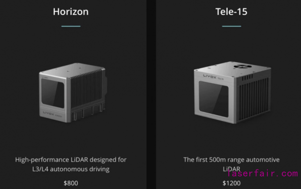 無人機巨頭大疆科技孵化的Livox(覽沃)成立於(yu) 2016年,可以說是今年國內(nei) 激光雷達領域的一匹“價(jia) 格”黑馬。千元級低成本激光雷達成為(wei) 市場關(guan) 注的焦點,Horizon的價(jia) 格為(wei) 800美元,Tele-15的價(jia) 格為(wei) 1200美元,開創了激光雷達性價(jia) 比的新高。