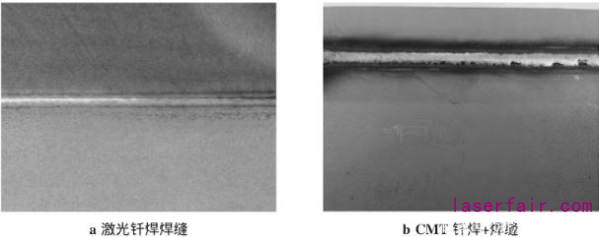 表4 激光釺焊及CMT釺焊+工藝及性能對比