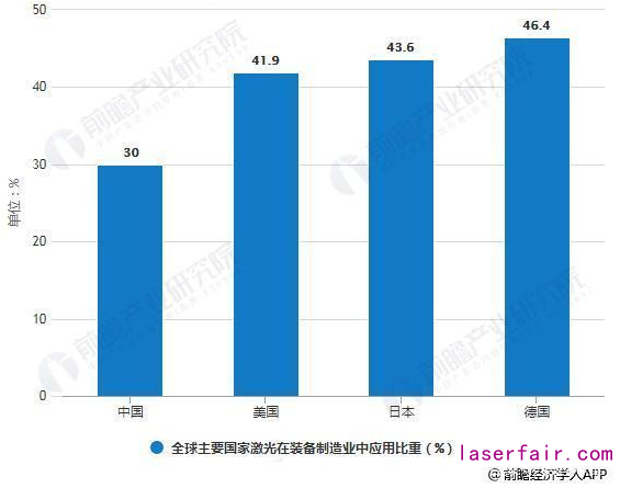 我國是製造業(ye) 大國,然而與(yu) 世界製造業(ye) 大國相比,我國激光在對製造業(ye) 尤其是裝備製造業(ye) 中的應用比例偏低,僅(jin) 為(wei) 30%。而美、日、德激光在裝備製造業(ye) 中的應用比重均超過了40%,其中德國高達46.4%,高出我國16.4個(ge) 百分點。這也是造成我國工業(ye) 結構升級緩慢的一個(ge) 原因。與(yu) 此同時,激光在製造業(ye) 的應用比例差距也可以看到我國激光產(chan) 業(ye) 的巨大市場潛力。在未來國家一係列產(chan) 業(ye) 結構調整及工業(ye) 結構改造過程當中,激光產(chan) 業(ye) 擁有廣闊的市場前景。