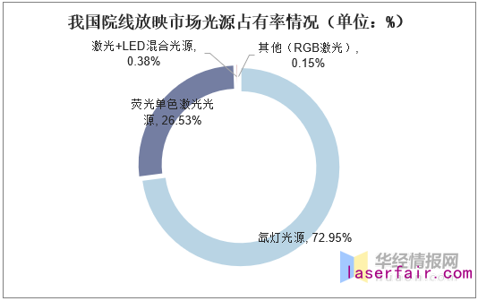 從(cong) 我國院線放映市場光源分布來看,相比疝燈光源,激光光源具有更高的光電轉換效率(光利用率比疝燈高出30~50%),更能節省維護費用(激光光源衰減慢、壽命長、免維護且無需更換燈泡)。並且,激光顯示具有高亮度、廣色域等優(you) 勢,更能滿足消費者對於(yu) 畫質的要求,幫助影院加強客戶黏度。由於(yu) 激光顯示在提升影院放映質量的同時也提供了更加優(you) 質的設備保障,因此將成為(wei) 全球電影放映技術的主流應用。