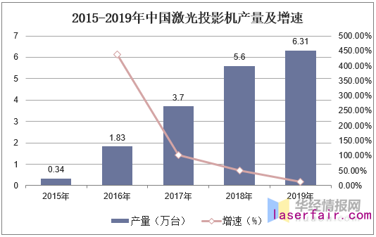 隨著家庭影院技術的成熟、消費者生活層次的提高以及經濟收入的增長,購置一台家庭放映機也已不再具有過高的門檻。近年來,家用消費類產(chan) 品在投影機市場的占比不斷提升,據統計,截至2019年我國激光投影機產(chan) 量為(wei) 6.31萬(wan) 台,同比增長12.68%。