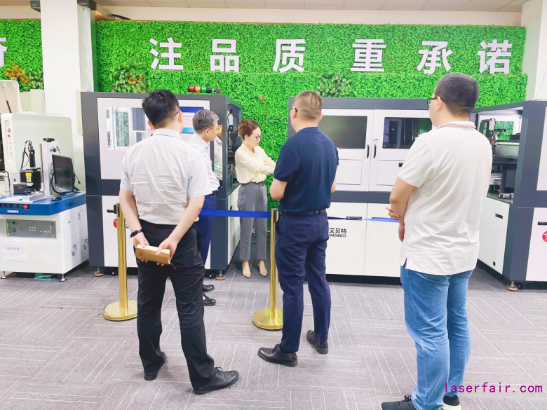 陳書(shu) 記在艾貝特團隊的陪同下,參觀了公司生產(chan) 車間,並饒有興(xing) 趣的觀看了激光焊錫機係列設備的現場焊錫演示。陳書(shu) 記聽取了艾貝特對生產(chan) 規模、經營理念、技術研發和公司未來發展計劃的介紹後表示對艾貝特生產(chan) 的設備高度放心與(yu) 肯定。