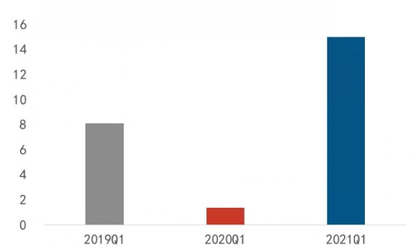 2019-2021年Q1中國大陸激光投影機工程市場出貨量