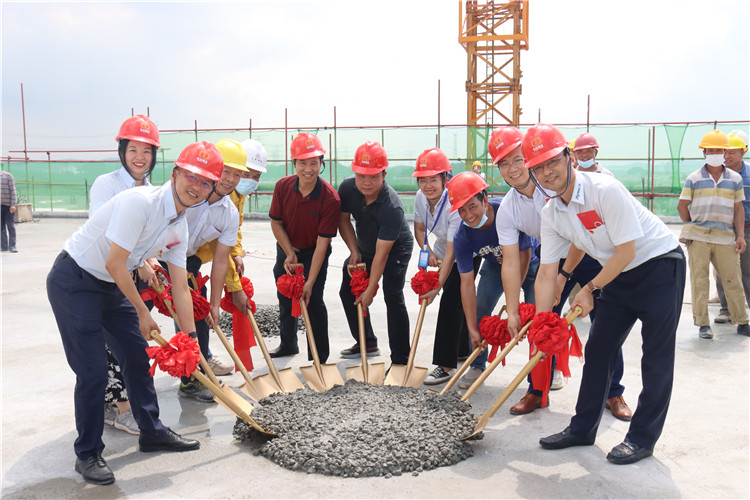 金鍬置土滿富貴,千沙萬(wan) 粒送吉祥。2021年6月3日10:30,伴隨著熱鬧喜慶的氛圍,封頂儀(yi) 式進入高潮,諸位領導共同執起金鍬,一起將最後一方混泥土鏟入預留洞,這標誌著海目星(江門)激光智能製造產(chan) 業(ye) 園二期項目研發車間正式榮耀封頂!