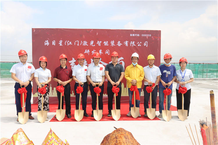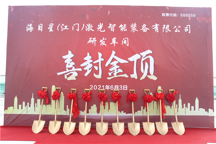 2021年6月3日,海目星(江門)激光智能製造產(chan) 業(ye) 園二期項目研發車間封頂儀(yi) 式圓滿舉(ju) 行!