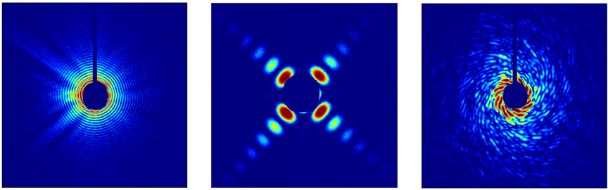 標準樣品圓孔、方孔及鸚鵡螺圖案的相幹衍射圖樣。