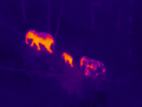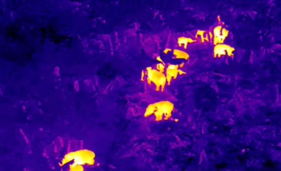 夜間觀測往往是跟進野象北移路徑中的又一工作難點。紅外熱成像功能此時則能有的放矢,高效補充夜間觀測盲點,象群家族夜晚活動的影像軌跡也能清晰可見。
