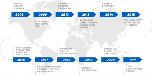 企業(ye) 的功成名就往往是堅持長期戰略聚焦,厚積簿發,隆信激光亦是如此。成立於(yu) 2008年,13年來專(zhuan) 注於(yu) 智能切管裝備,專(zhuan) 注成就專(zhuan) 業(ye) ,隆信激光現已成為(wei) 國內(nei) 激光切管領域的後起之秀。持續在智能切管裝備領域深耕細作,隆信激光立誌在2025年前成為(wei) 全球領先的激光切管裝備提供商。