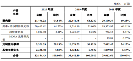 當前英諾激光主營業(ye) 務收入按產(chan) 品分類的主要構成情況如下: