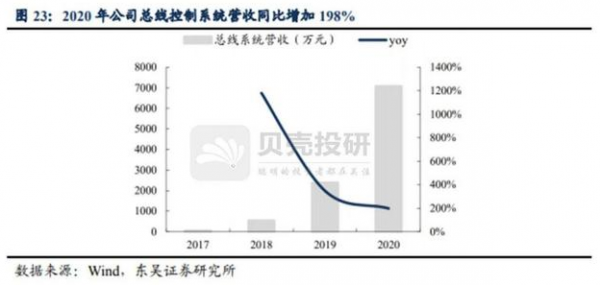 公司作為(wei) 業(ye) 內(nei) 翹楚,是國內(nei) 第一家高功率激光切割控製係統供應商,目前各項技術水平已達到國際先進水準,總線係統正處快速放量期,2019-2020年分別實現營收2375和7068萬(wan) 元,同比增長348%和198%,2017-2020年CAGR高達261%。我們(men) 預估,2020年公司高功率產(chan) 品的市占率約為(wei) 17%,短期內(nei) 市場份額已得到明顯提升(2019年約10%)。