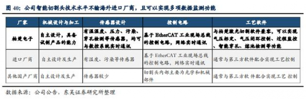技術上,公司智能切割頭工藝技術不輸海外進口產(chan) 生廠商,可以實現多項數據監測功能。公司現有生產(chan) 的智能切割頭以及未來規劃擴產(chan) 的其他係列切割頭的機械設計與(yu) 加工均為(wei) 自主完成,配備濕度、壓力、汙染、穿孔檢測等傳(chuan) 感器,能夠實現與(yu) 數控係統實時通訊,與(yu) 公司現有的激光切割軟件兼容,可以實現氣壓標定等多項功能。