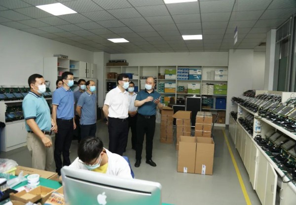 隨後,為(wei) 全麵了解金海創在疫情下的生產(chan) 狀況和現有產(chan) 量,領導們(men) 來到金海創科技29幢車間參觀。